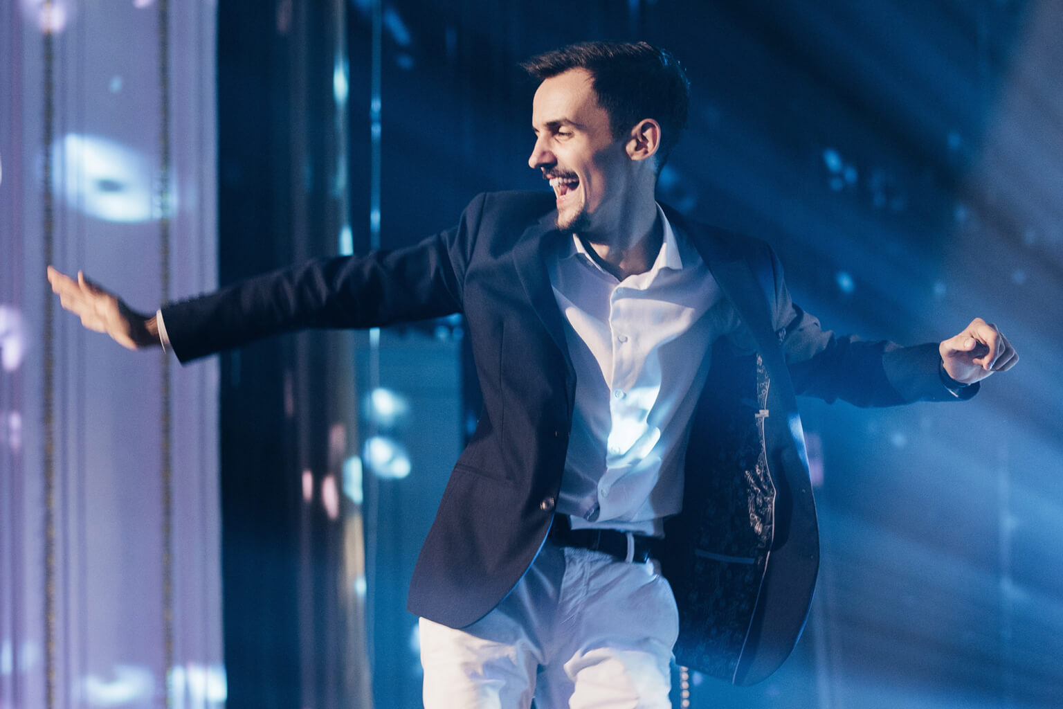 Scenoje esu buvęs šimtus kartų, ir, vieša paslaptis, joje beveik visada kyla nesklandumų – kažkas vėluoja, kažkas neveikia, kažkas keičia programą paskutinę minutę. Patirtis televizijoje, kurioje svarbi kiekviena sekundė, mane išmokė greitai persiorientuoti, o improvizacija teatre – rasti sprendimą net tada, kai atrodo, kad visos kortos sumaišytos. Publika neturi jausti streso.